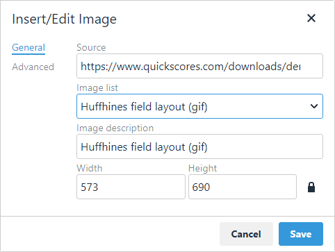 Select one and the URL and Display Text are populated. No more copy/pasting URLs for these QuickScores items.